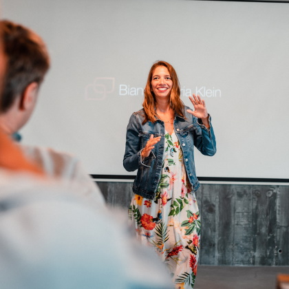 Bianca-Maria Klein liebt Menschen und unterstützt sehr erfolgreich Unternehmen und Organisationen in Vorträgen und Workshops in den Themen Erwartungsmanagement, Führung, Kommunikation und übergreifende Zusammenarbeit unterschiedlicher Teams.